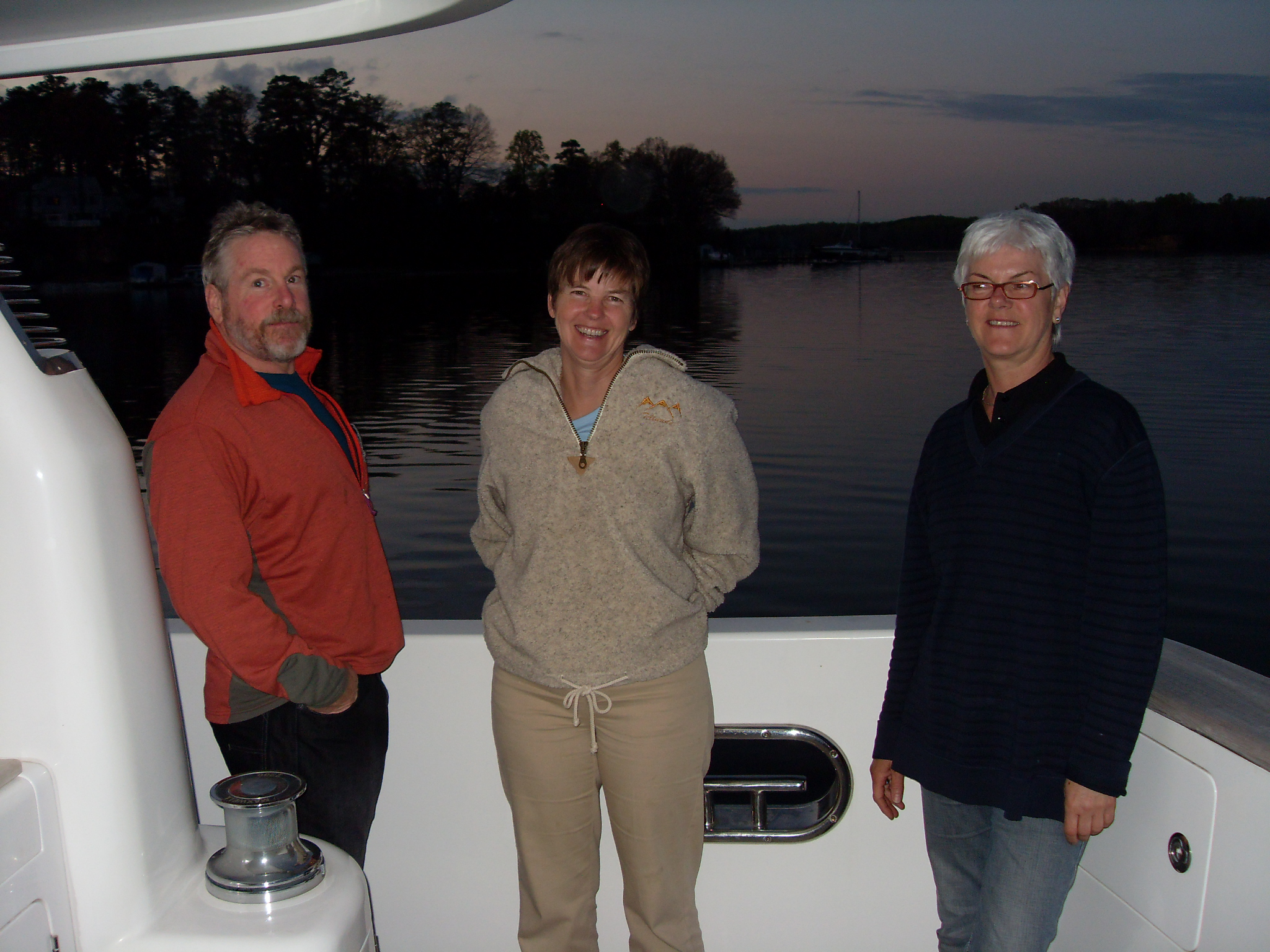 In the morning we had beautiful weather so we headed north up the Patuxent for a ways, exploring along the way and enjoying the welcome sunshine! Then we headed back to Solomon’s Yachting Center where Captain Bradley brought us right alongside the dock smoothly and safely. In short order we had the boat secure and breathed a huge sigh of relief that our first outing of the year had been so smooth. We ordered some fresh local oysters and enjoyed lunch on the flybridge before manning the hoses, sponges, and chamois to wash down the boat. Erwin and Uli did a great job in crew training and passed with flying colors! We hope to see them on board again soon – maybe this winter in the Caribbean!