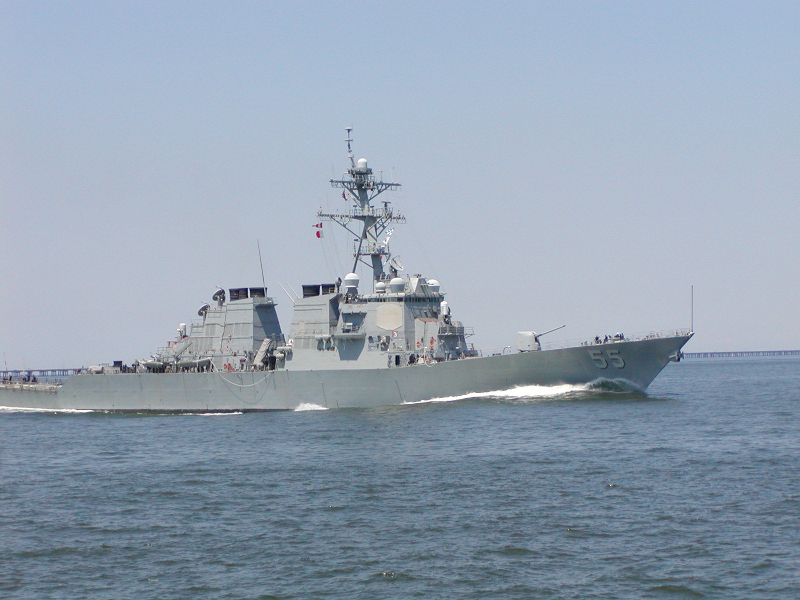 On Thursday we departed the Bay for the Atlantic Ocean with our next destination Charleston, SC, a trip of about 440 miles which will take us about 54 hours. To get to the ocean, we pass over the tunnel portion of the Chesapeake Bay Bridge Tunnel near Virginia Beach. As we were approaching the tunnel, US Warship 55 was behind us, moving much faster and closing rapidly (note that Warships don’t identify what type of ship they are, nor do they show up on AIS – the vessel identification system). So it was just Warship 55. A tug pushing a large barge was coming the other direction and it looked like they would pass right around the tunnel crossing. The tug contacted the warship to request that it reduce speed so as not to cause excessive wake. Then the Warship called us to ensure we were willing to move over to let him pass, as even at reduced speed he was much faster than us. We agreed and expressed our thanks for all they do for “our country”, then realizing we fly a Cayman Islands flag as that is where our boat is registered. The Warship radioman then said he noted our name Shear Madness and wanted to make sure we weren’t planning to do anything crazy. We all had a good chuckled and posed for some photos as the Warship passed us.