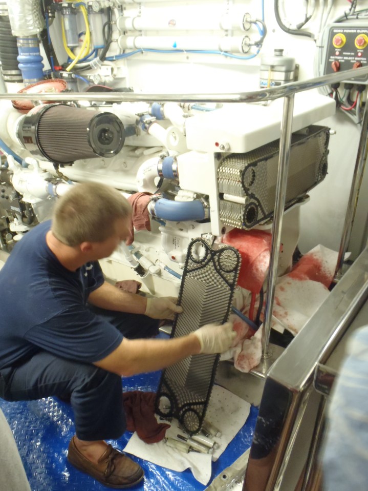 Return to Charleston (July 2011) » 05 Chad works on the fuel cooler on port side engine