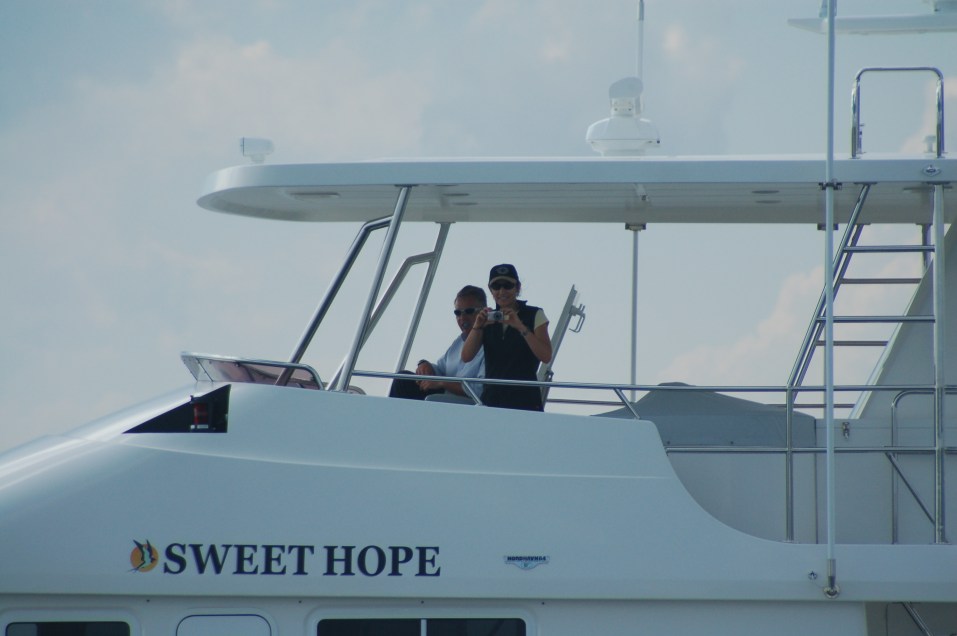 Passage down the Intracoastal Waterway (Sept 2011) » 08 George and Leanne on the Flybridge of Sweet Hope