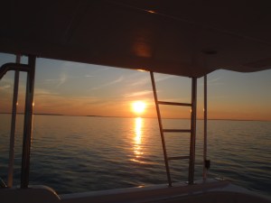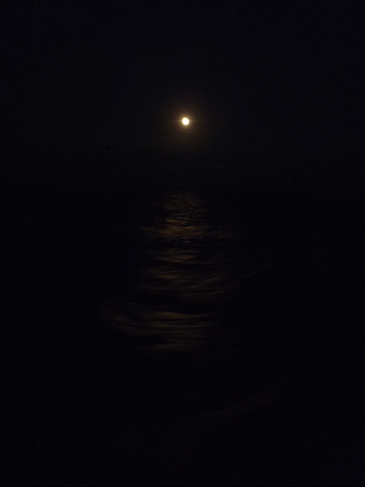 Our dockmate at the Westin marina was a 102 foot boat called Who Cares, which travels along with its two fishing vessels named So What and Whatever. We loved the names and enjoyed meeting Captain Richard. We hope to catch up with the boat in the Bahamas in a couple months. After a great few days of relaxation, good food, and nice people, we were ready to make the 320+ mile trip to North Palm Beach, a journey that would take a little less than two days. The Savannah River has 8-foot tides, so we departed just before noon in order to make it out of the Savannah River on the ebbing tide (so as not to go against the current on the way out) and to arrive in Palm Beach after sunup two days later. Conditions were good, though not quite as smooth as the previous legs. Since leaving Jarrett Bay, we’ve been keeping a list of the things that aren’t working quite right – there are quite a few things on the list which we will address in Florida, but none that we can’t work around (and these will be reported on in a separate post for those who are interested).