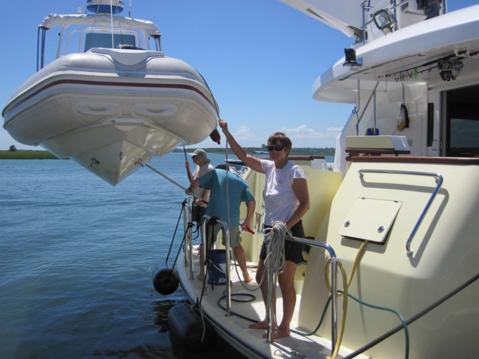 2012-08 A Dreamer’s First Passage » 02 Readying the tender to put on deck