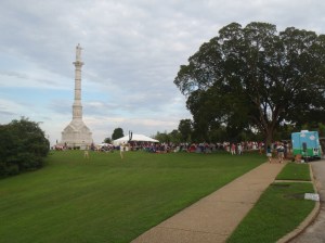 On August 31st while still anchored at Mobjack Bay, we had a Blue Moon – the second full moon of the month. It was a crystal clear night and the moon was truly spectacular. We were all alone in the anchorage – it doesn’t get much better than that! The moon was still shining brightly the next morning. Too bad John and Patti missed it by one day! We then headed up the York River and anchored near Yorktown, famous for being the place where General Cornwallis surrendered during the Revolutionary War. We spent a couple days exploring Yorktown, eating crabcakes at the Yorktown Pub and walking around the battlefield. We also took the tender up the York River about 23 miles to the town of West Point, VA, the birthplace of Lewis “Chesty” Puller, the most decorated marine in US History. West Point is a charming small town and home to a paper mill, but there is no pubic dock or marina to leave a tender and go ashore. Not to worry – some locals encouraged us to tie up to their dock and we went for a walk around town and light lunch. We started back to Yorktown, amazed at how few boats were out on the river on the Sunday of Labor Day weekend. It’s a nice wide and deep river and a perfect sunny day but we probably saw only about a dozen boats in 20 miles!