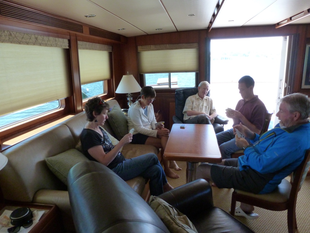 - Cindy, Kathy, Bill and Bradley play bridge while Luther coaches (photo by Nancy Hampton)