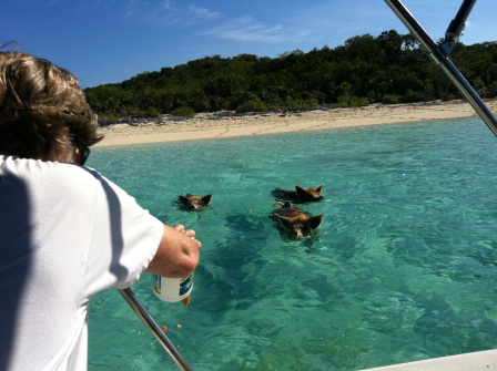 2012-12-28 Happy New Year from Staniel Cay » Alan Feeds the swimming pigs