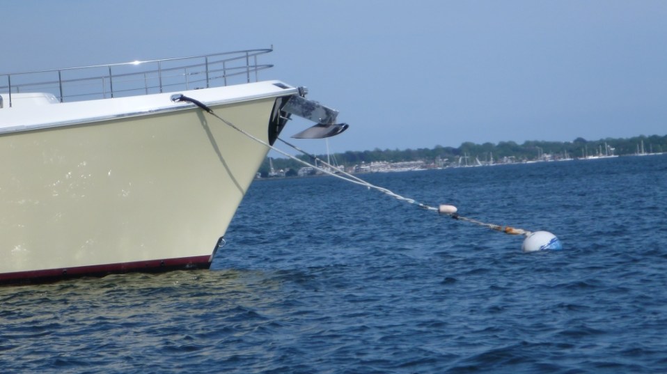 Attached to the mooring – the white lines are on themooring, the black lines are ours