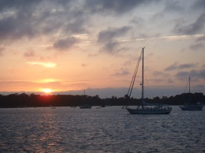 Prudence Island was a great place to practice paddleboarding, though the wind and current made it a challenge at times. But I was able to meet a couple local quahoggers – quahogs are the local clams – and we enjoyed a couple dinners of very fresh ones! Prudence Island was fun to explore, except for the mosquitoes, ticks, and poison ivy! We went nearly a week with no visible sign of the sun and with temperatures remaining fairly cool. Finally, on the 3rd of July, the sun made an appearance.
