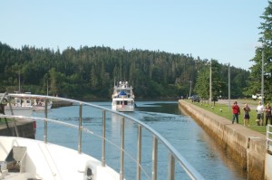 All too soon it was time to head back to Halifax where it was my turn to fly to Florida to visit my in-laws, then on to Virginia for a couple days. Tyler was also returning home to Alabama to attend his sister’s wedding. Summer Star was also heading back south, so we rendezvoused at St. Peter where we enjoyed a nice dinner out at the Bras D’or Lakes Inn along with their onboard guests JP and Diane. We traveled together through the St. Peter Canal, but then Summer Star, a much faster boat at a cruising speed of almost 9 knots, took off, leaving us to follow in her path.