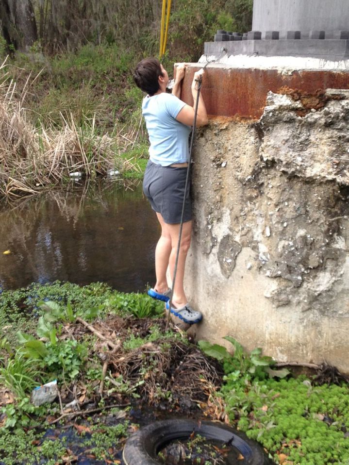 2014-03 Passage to the Abacos » Kathy finds a geocache in Thunderbolt