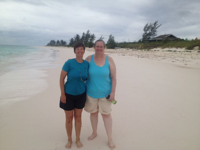 2014-04 Cat Island, Bahamas » Kathy and April have the beach to themselves at Greenwood