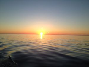 While we have been trailing two fishing lines all day, we have not had a single nibble. These waters require a different fishing approach, but we thought we would give it a try. We always bring the fishing lines in at sunset.