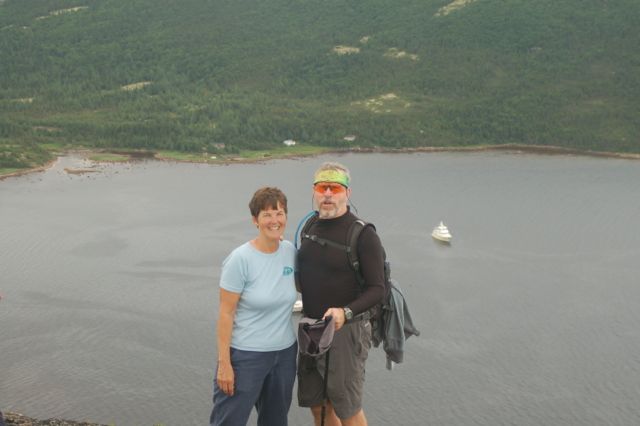 2014-07 Labrador – Icebergs and Beauty! » Kathy and Bradley high above Shear Madness
