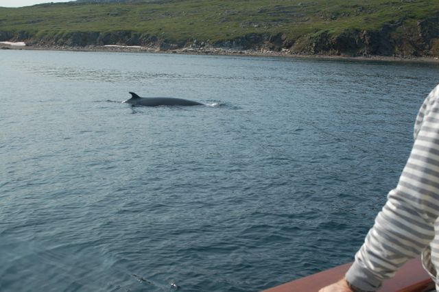 2014-08 Labrador and Davis Strait » Minke Whale swims around the harbor at Torngat