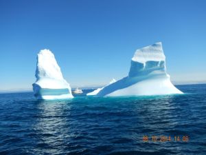We pick up our adventure here in Itivdliup Ilua where we spent the night after a 12-hour attempt to go 50 NM from Aasiaat to Ilulissat. This trip should have normally taken us 7 to 8 hours. We set out on Sunday morning at 11:00 with blue skies and comfortable temps in the low 40’s(F). It just feels so much warmer when the sun is shinning and the seas are flat. As we started our adventure north to Ilulissat, we passed some amazing icebergs that required we stop and do a photo shoot. As usual Captain Gulliver was keeping a close eye on the situation.