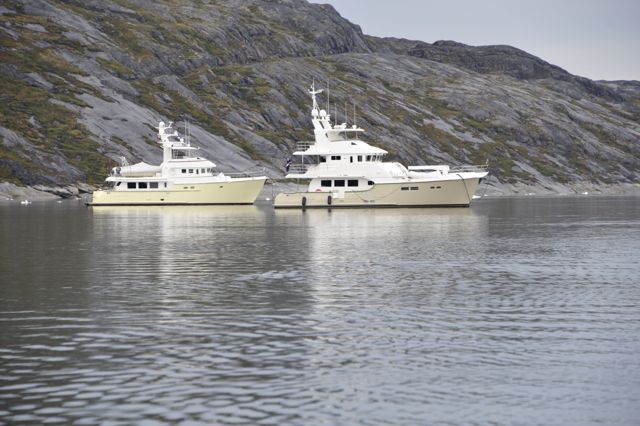 2014-08 Rodebay (Oqaatsut) and Ilulissat » Boats at anchor in Rodebay