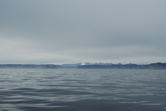 We woke to a key decision. The weather router had suggested we stay anchored until Noon, before proceeding south. But it was pouring rain and other than watch the polar bear wander around (he was still there) before settling down for a nap and shower there was not much to do. We decided to stick our nose outside to test conditions. There was a backup anchorage just 12 miles south if things were too rough.