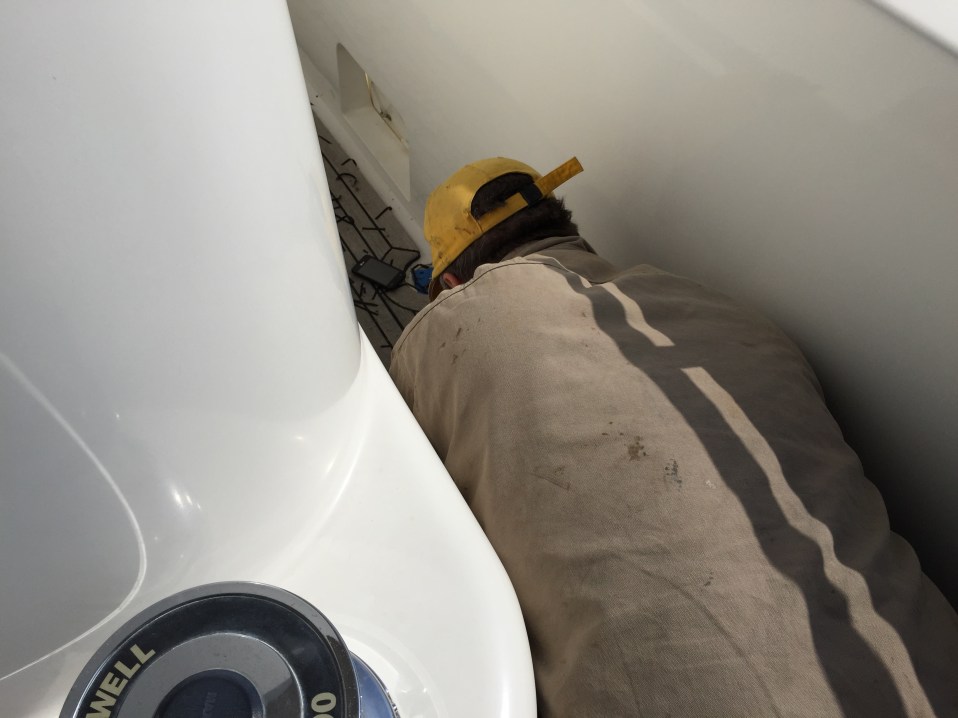 2015-04 General Repairs » Danny from Moore’s Marine works on the teak decks
