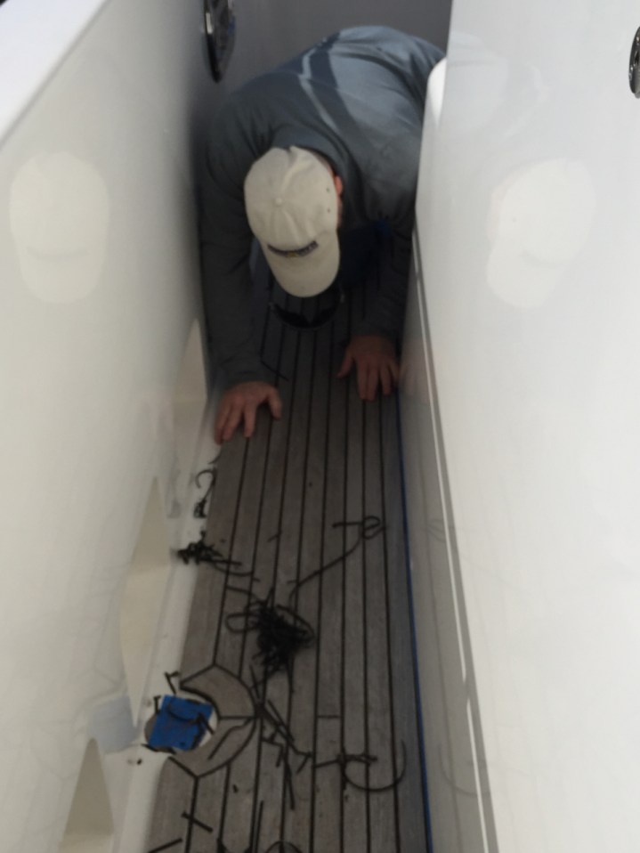 2015-04 General Repairs » Danny from Moore’s Marine works on the teak decks