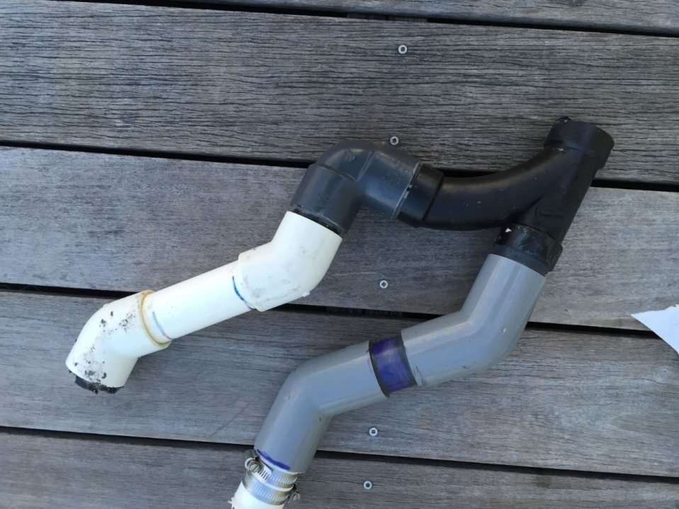 2015-09 Chesapeake Bay and Land Travel » Section of head (toilet) line that had to be cut out due to poor design (90 degree angle on pipe) resulting in clog