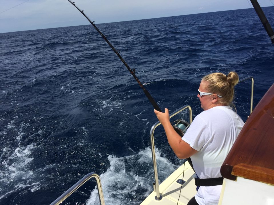 Mandy catches a fish