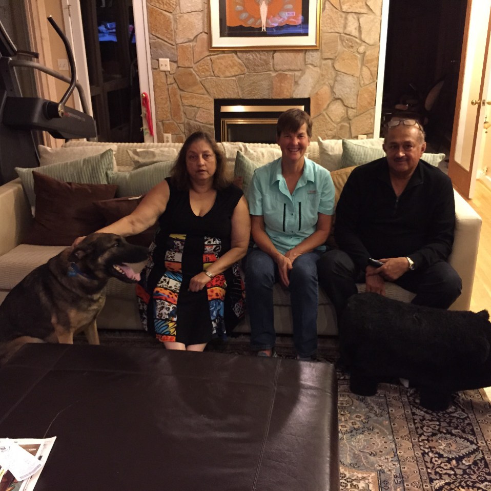 Kathy with good friend Bina and Sudhakar and Diesel the Dog