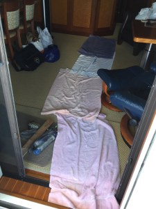 Although NC suffered some serious flooding from Hurricane Matthew, Shear Madness survived just fine. We headed back down to re-launch and move her back to Morehead City Yacht Basin. Aside from the expected dirt from being in a boat yard, there were no other issues.