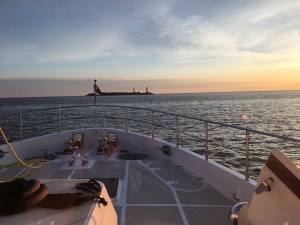 We departed from Morehead City Yacht Basin  at 15:00 on Saturday, April 29th. Our crew was our good friend Neil from New Zealand who will be spending the season with us as our engineer, and Bob, a great new friend who was introduced to us by a mutual acquaintance. Bob is the previous owner of “The Good Life”, a very familiar looking Nordhavn 72 which is now named Shear Madness! Needless to say, Bob required almost no training!