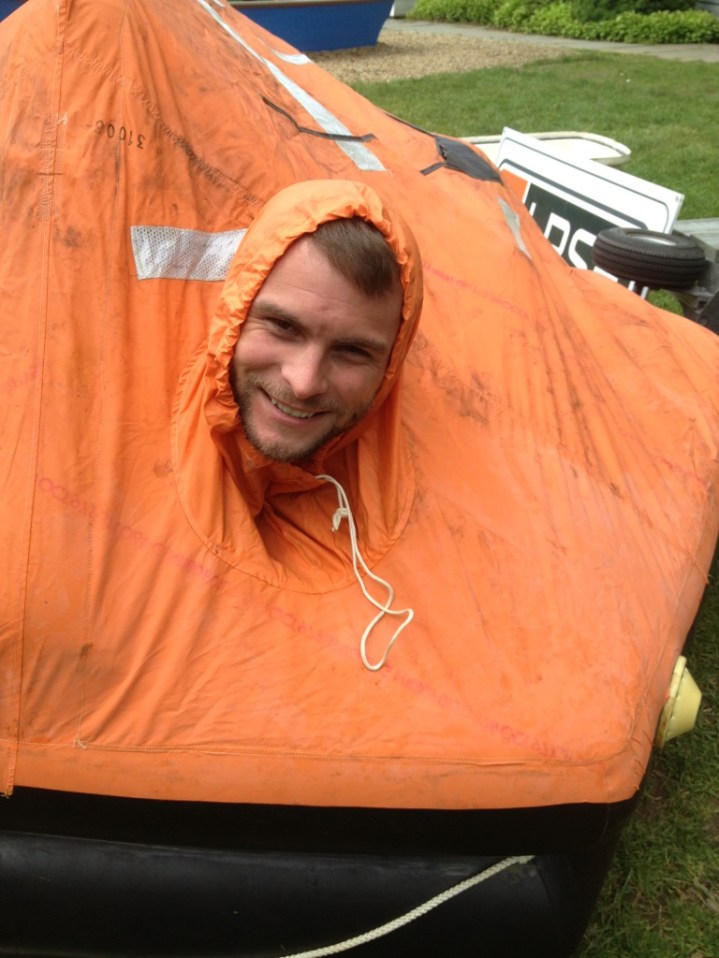 Tyler demonstrates the liferaft lookout hole